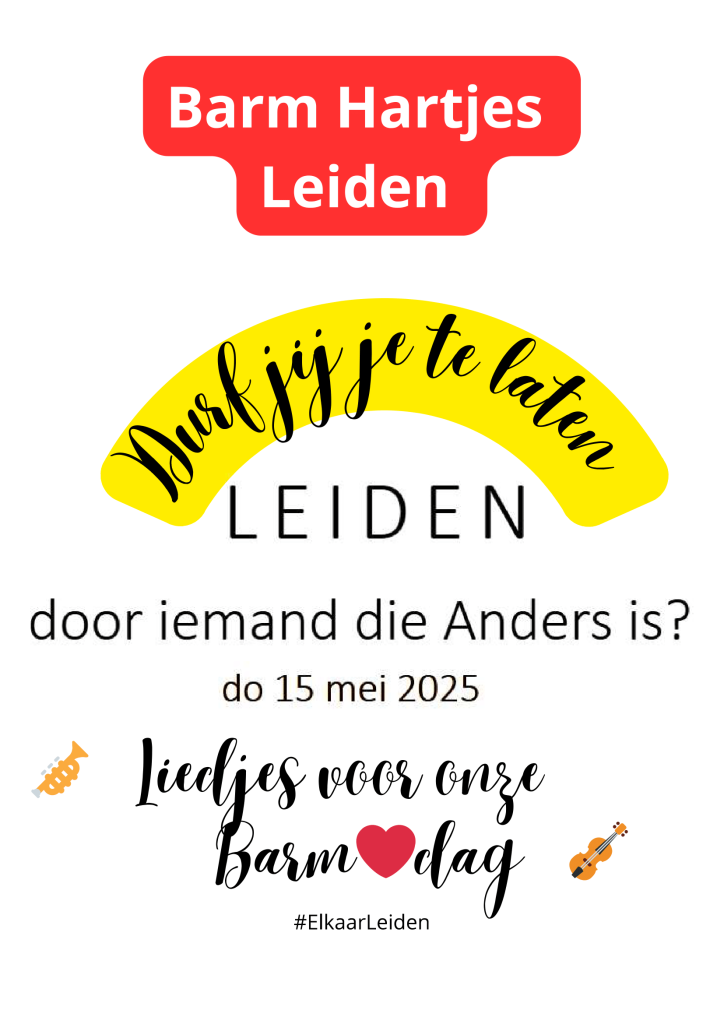 Barm ❤️ Leiden is een oproep aan ons allen tot bewustwording, tot verbondenheid. Met mensen die ‘Anders zijn’, met kwetsbare medeburgers. Iedereen in de samenleving wil gezien worden. Iedereen wil erbij blijven horen, ertoe doen. Als mens.